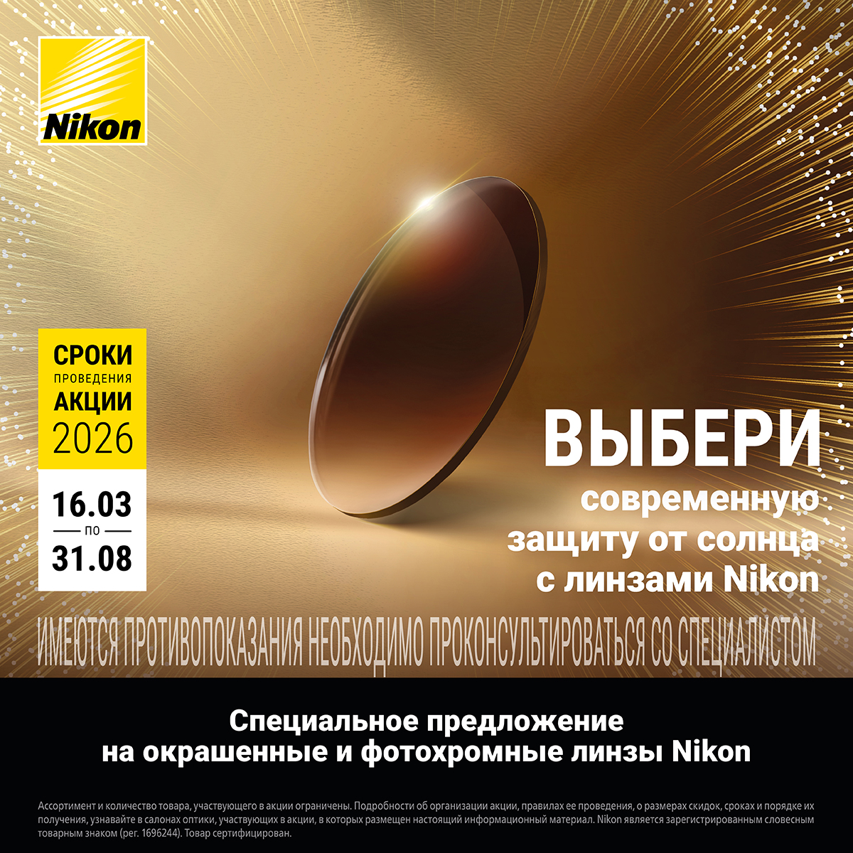 Выбери современную защиту от солнца с линзами Nikon со скидкой 30%